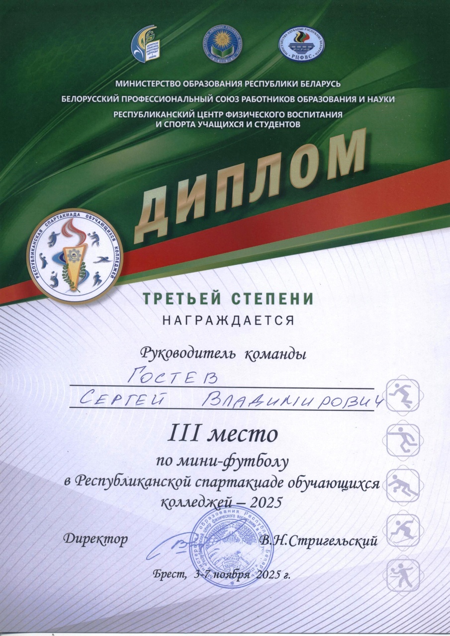 Мини-футбол Завершились областные соревнования по мини-футболу среди учащихся учреждений профессионально-технического и среднего специального образования. Команда колледжа заняла почетное I место.