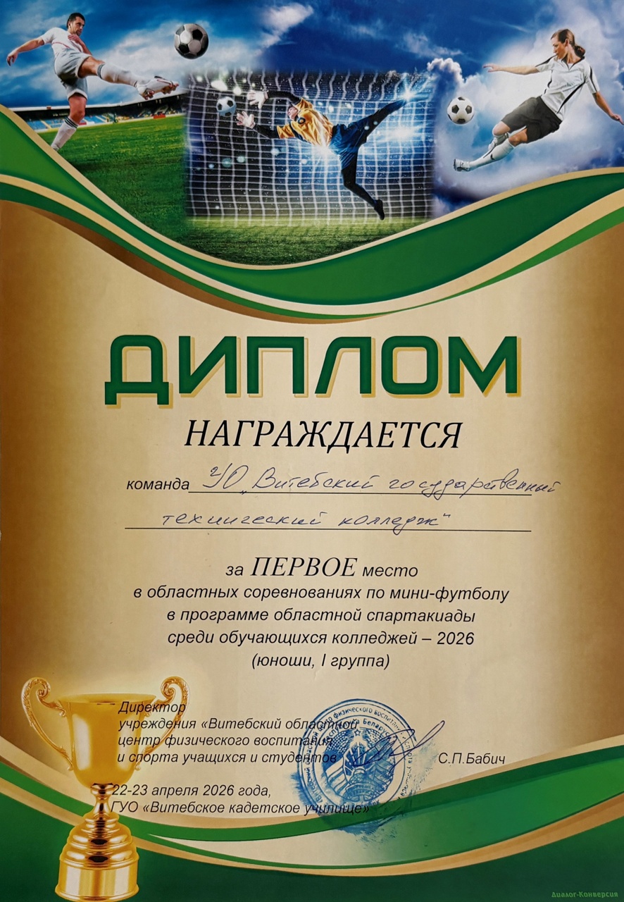 МИНИ-ФУТБОЛ Завершились областные соревнования по мини-футболу среди учащихся учреждений профессионально-технического и среднего специального образования. Команда колледжа заняла почетное I место.