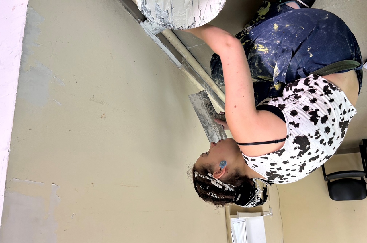В группе С-31 проходит технологическая практика, во время которой учащиеся шпаклюют стены. Это помогает им приобрести практические навыки в отделочных работах и подготовке поверхностей к дальнейшей отделке.