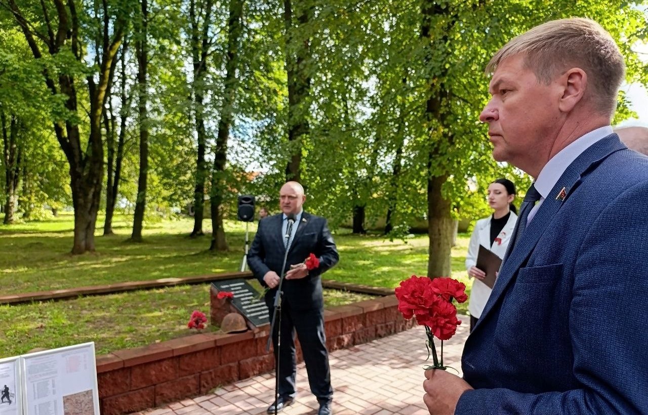 Участники митинга почтили минутой молчания память погибших. При погребении останков защитников Отечества прогремели оружейные залпы, на братскую могилу возложили венки и цветы.