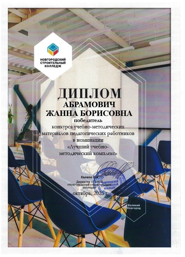 Преподаватели колледжа являются постоянными участниками и победителями конкурса научно-методических материалов педагогических работников, проводимого в ОГБ ПОУ "Новгородский строительный колледж".