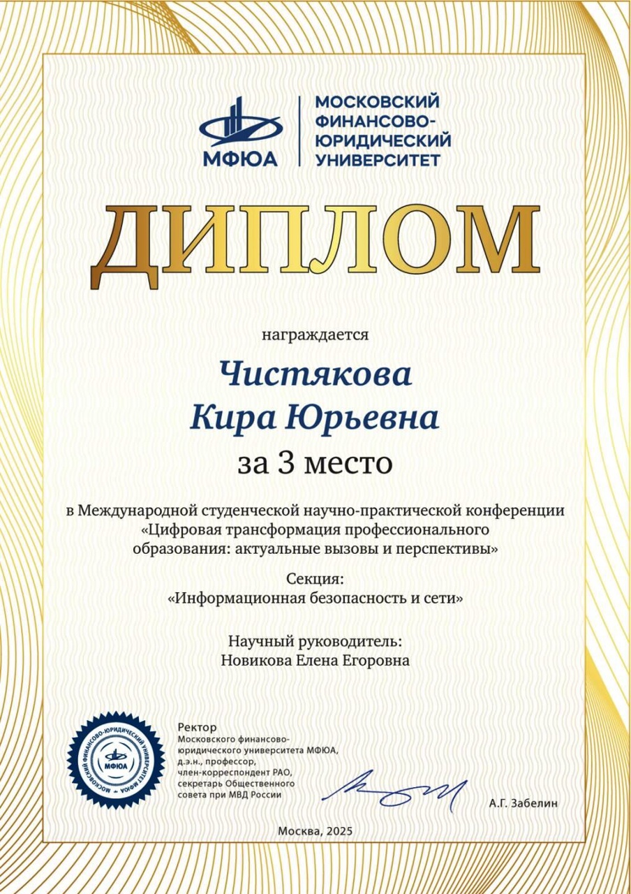 Учащиеся и преподаватели колледжа успешно приняли участие в Международной студенческой научно-практической конференции "Цифровая трансформация профессионального образования: актуальные вызовы и перспективы".