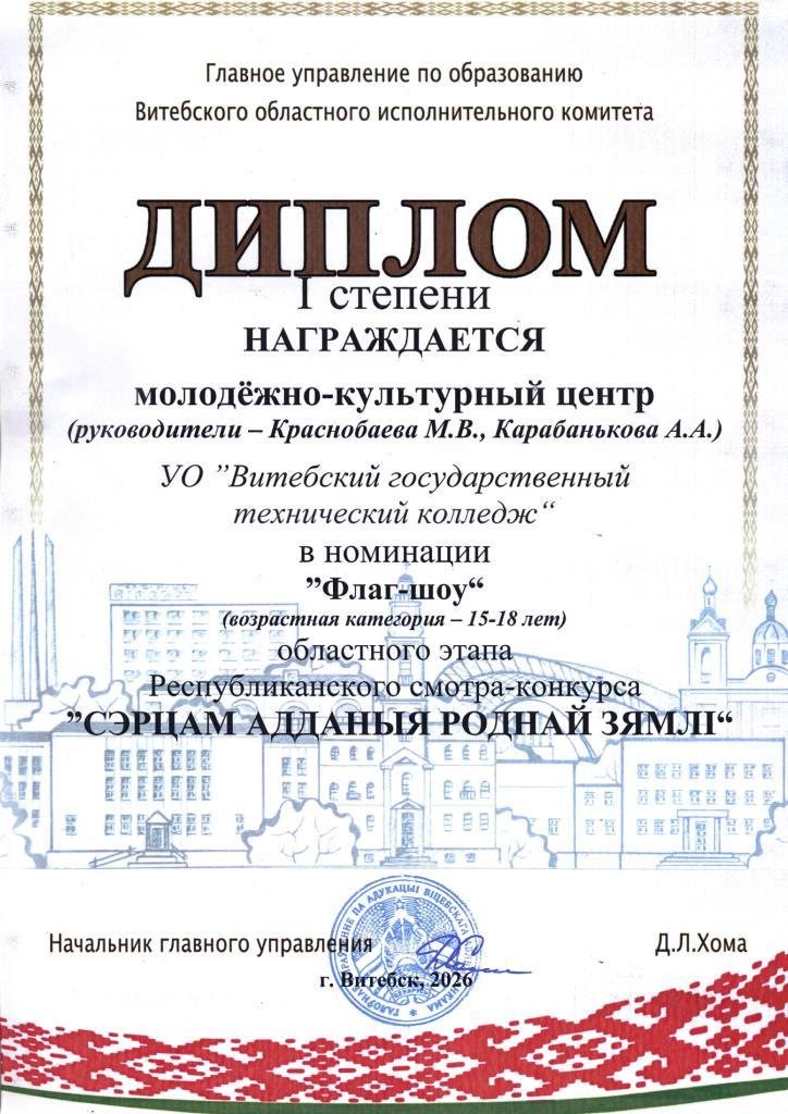 Молодежно-культурный центр колледжа получил диплом I степени в номинации «Флаг-шоу».
