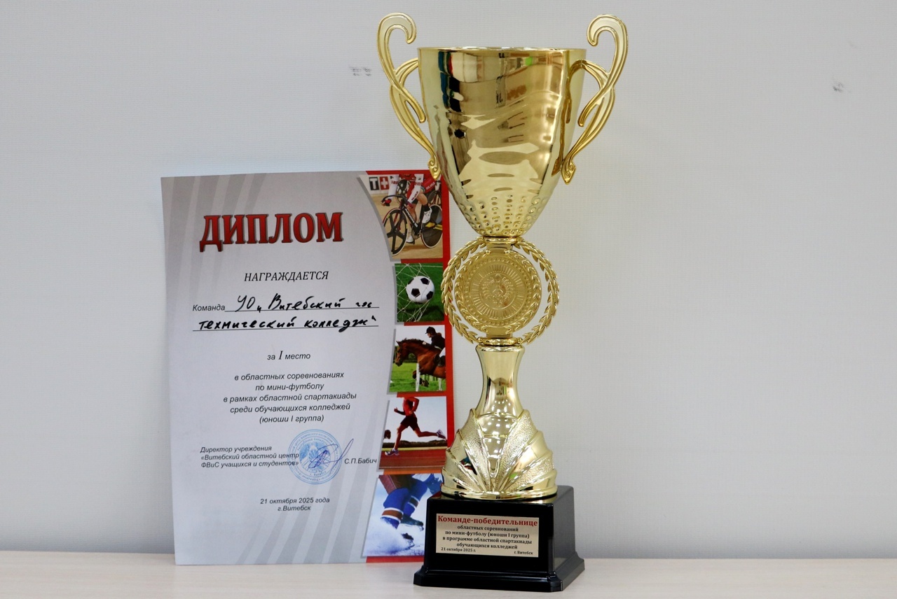 Мини-футбол Завершились областные соревнования по мини-футболу среди учащихся учреждений профессионально-технического и среднего специального образования. Команда колледжа заняла почетное I место.