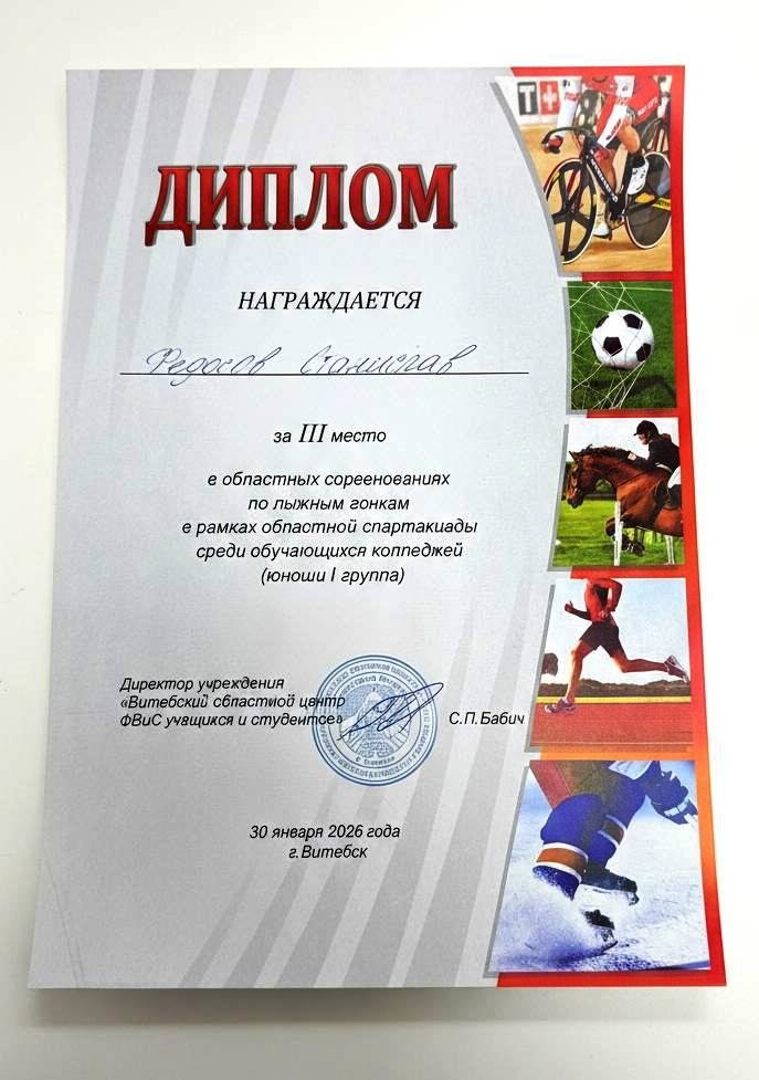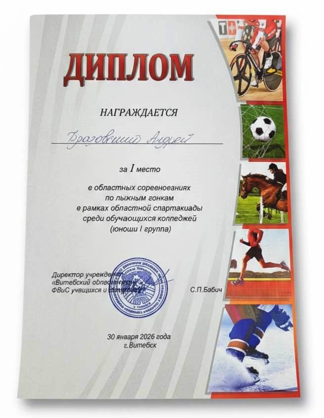 Сборная команда Учреждения образования "Витебский государственный технический колледж" завоевала первое общекомандное место в областных соревнованиях по лыжным гонкам в рамках спартакиады среди учащихся колледжей в Витебске и