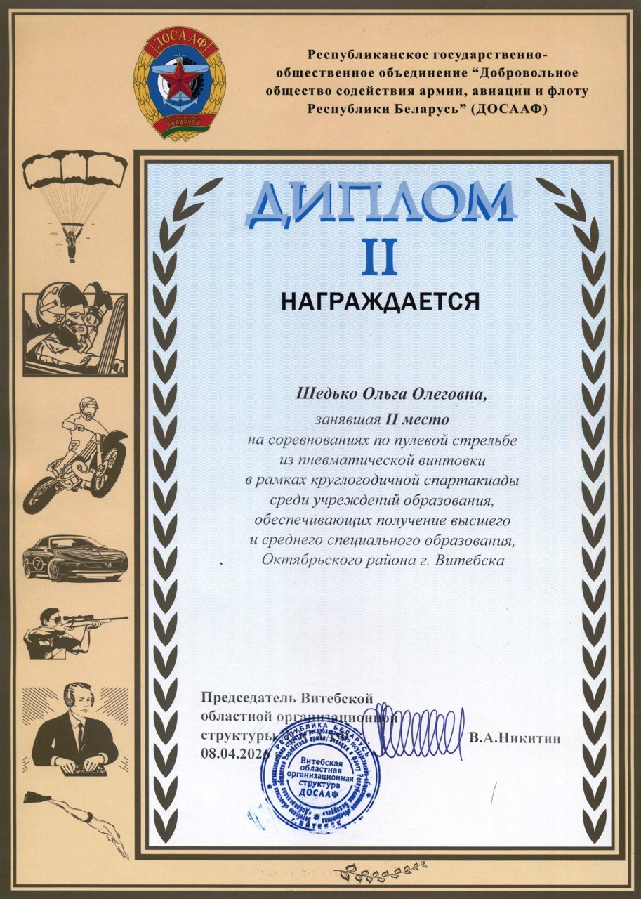 🔥 Шедько Ольга — мастерское владение оружием и точность выстрела награждены Дипломом II степени!