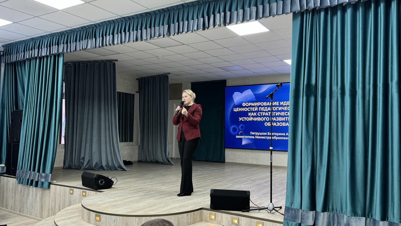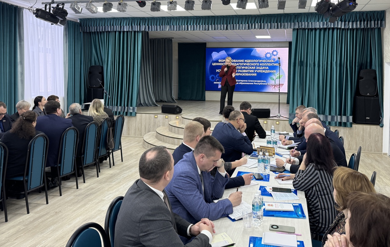 Ключевым спикером выступила заместитель Министра образования Республики Беларусь Екатерина Александровна Петруцкая. В своем докладе она обозначила формирование идеологических ценностей педагогического коллектива как стратегическую задачу развития учреждений образования.