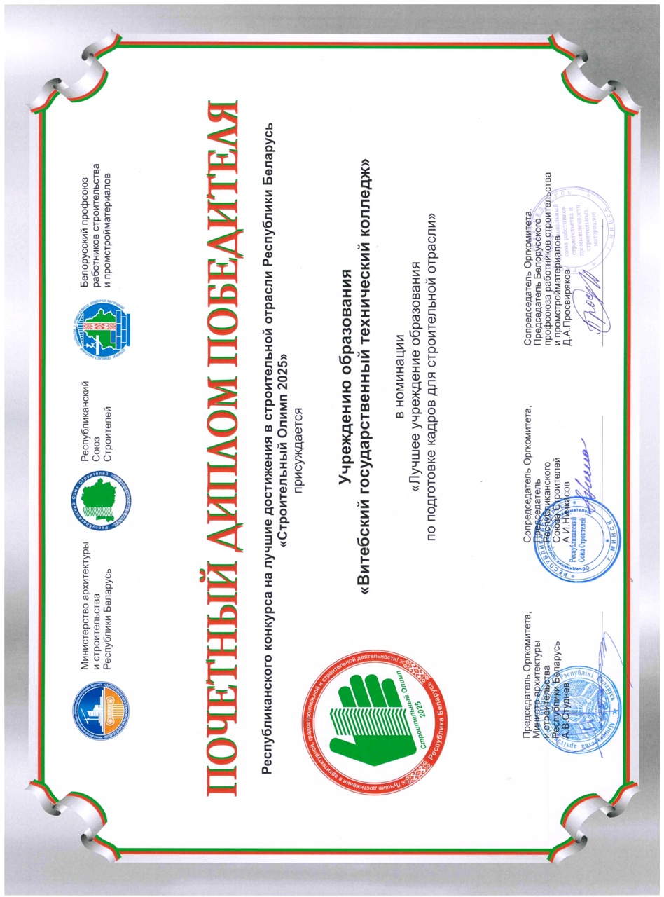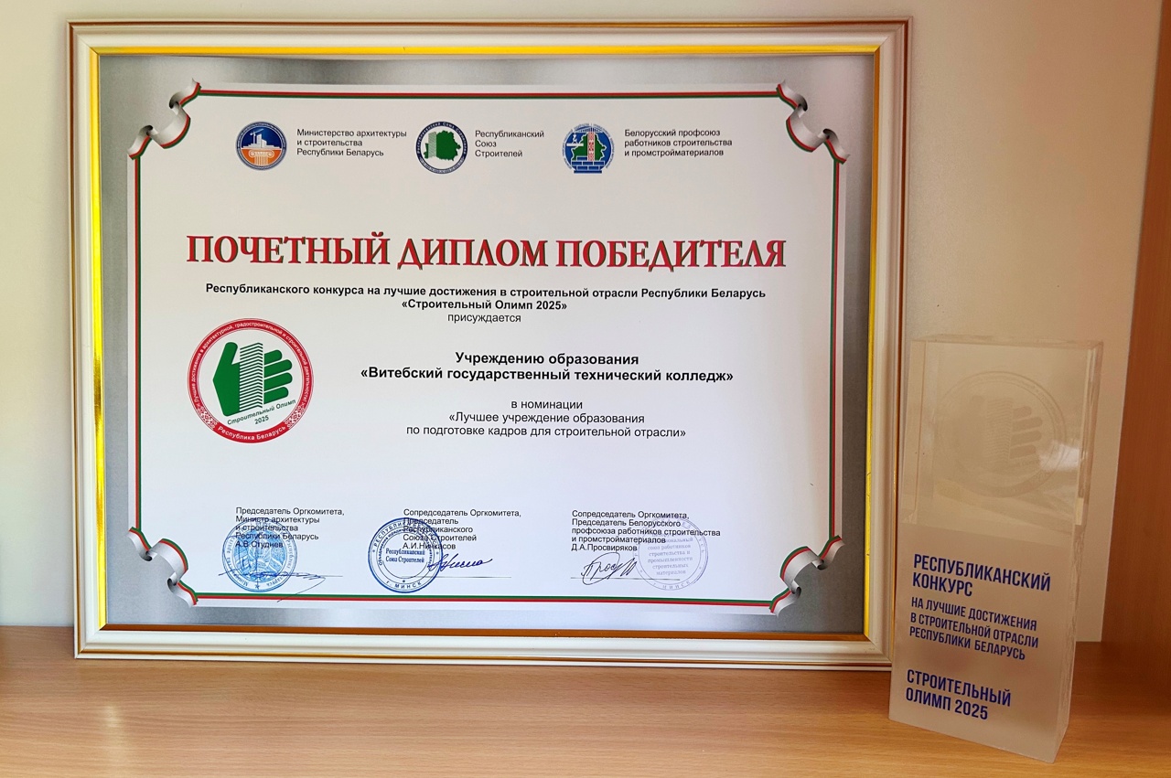 Витебский государственный технический колледж с 1 июля 2025 года является членом Республиканского Союза Строителей.