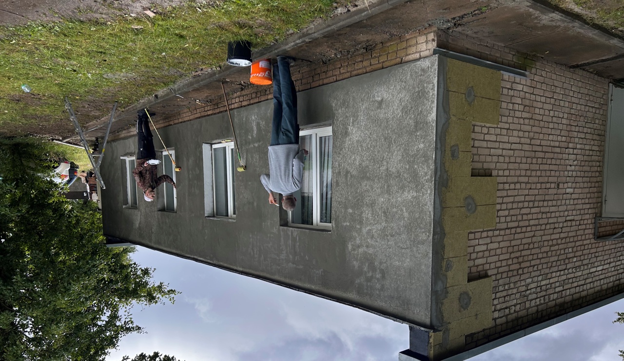 Мастера производственного обучения сделали утепление фасада, устанавливая теплоизоляционные материалы, такие как пенопласт или минеральная вата, и закрепляя их на стене. После этого они зашили утеплитель армирующей сеткой и нанесли штукатурку. Когда поверхность подготовлена, мастера начали окрашивать фасад краской, равномерно нанося её кистью или валиком. В результате получается теплоизоляционный и красивый внешний вид здания.