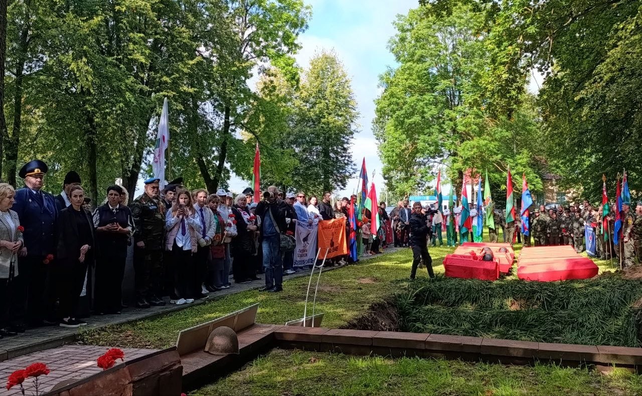 Участники митинга почтили минутой молчания память погибших. При погребении останков защитников Отечества прогремели оружейные залпы, на братскую могилу возложили венки и цветы.