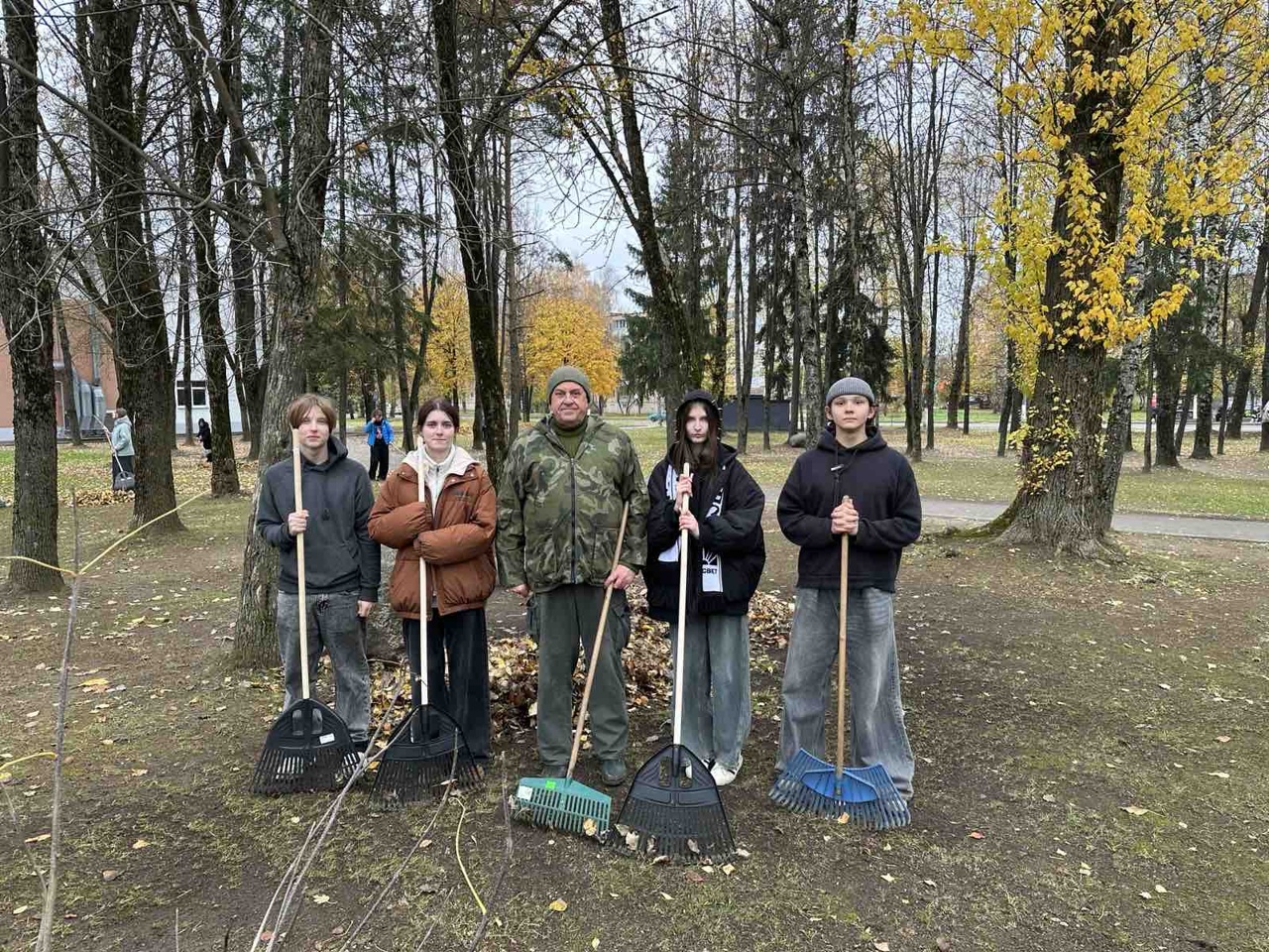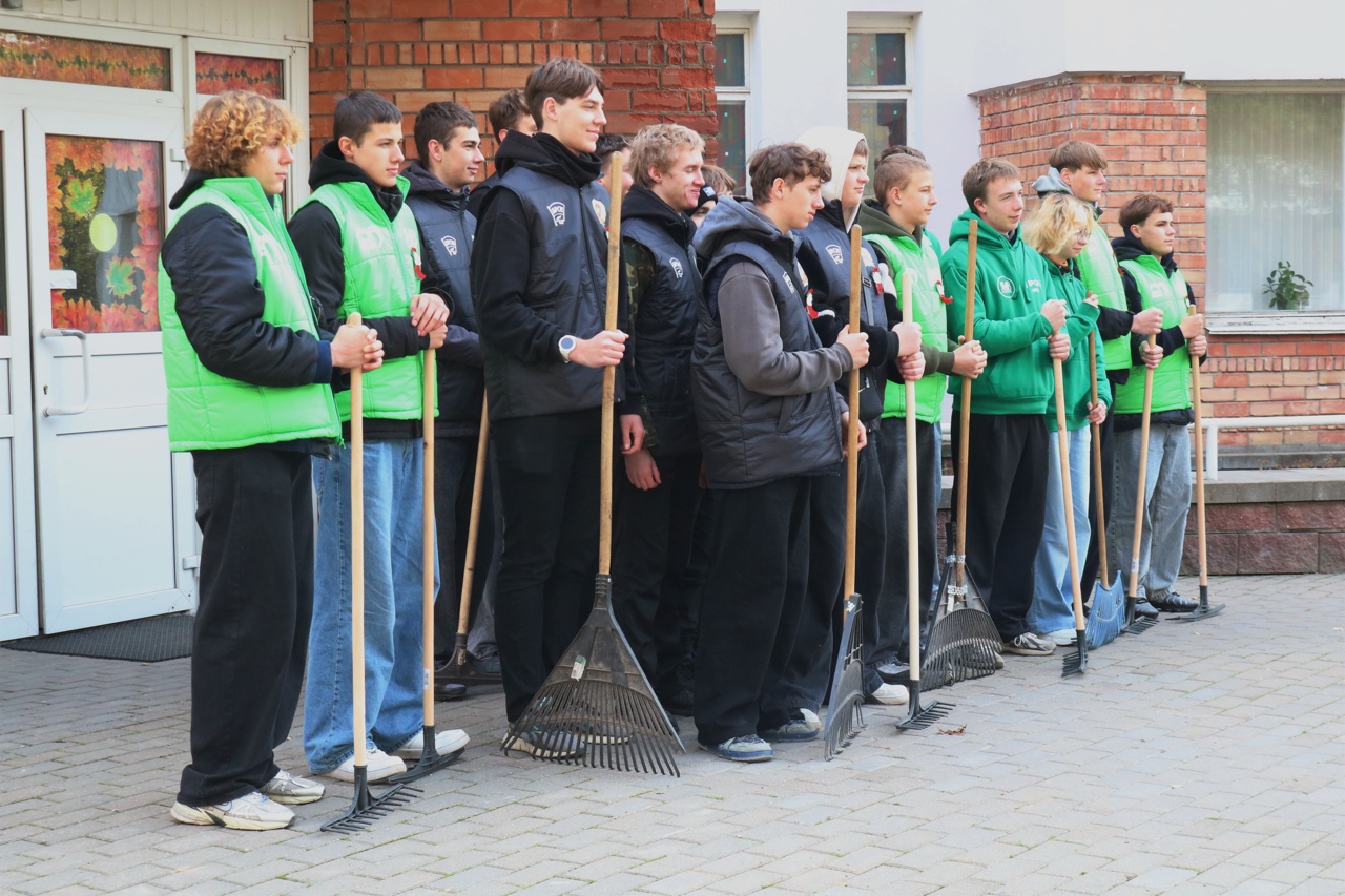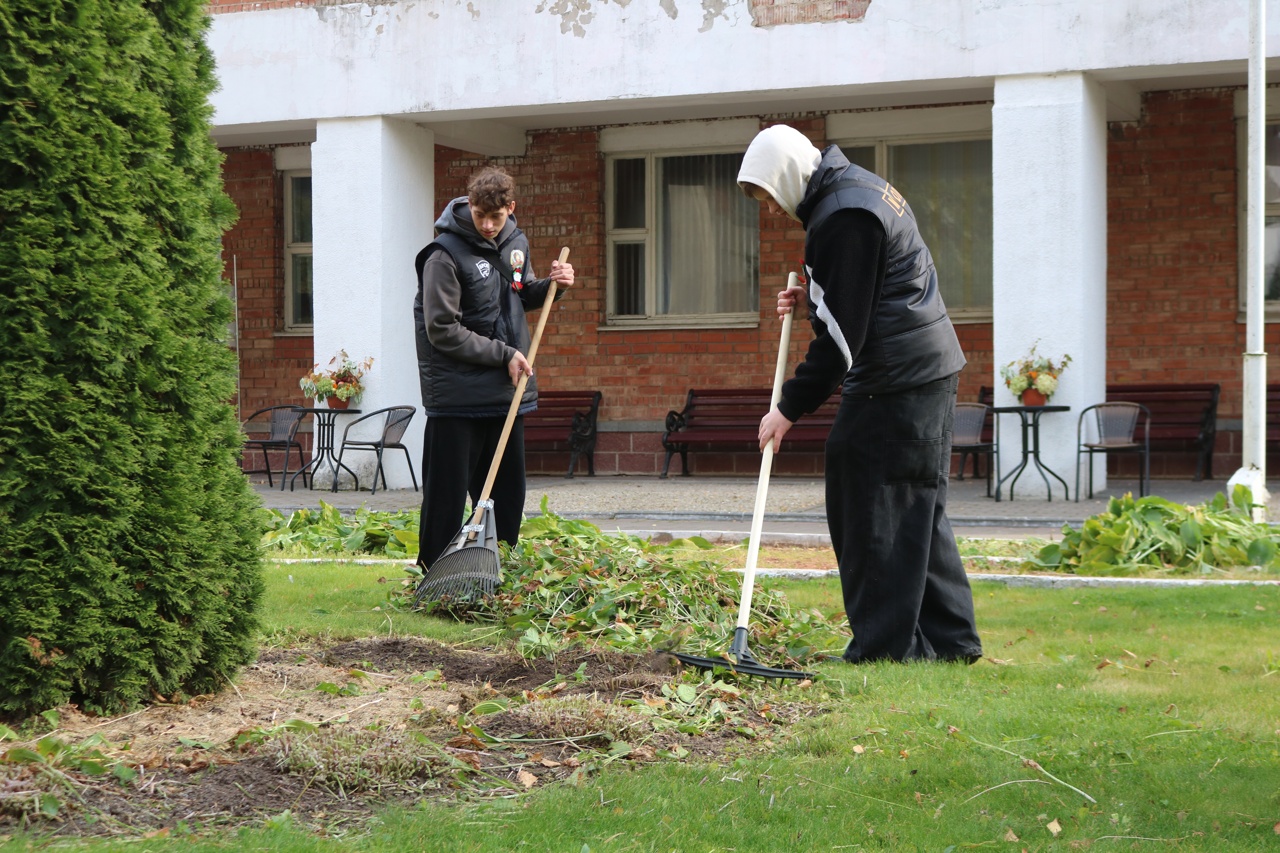 Учащиеся колледжа помогают убирать территорию от листвы, поддерживая чистоту и порядок на территории колледжа. Это важное занятие, которое учит их ответственности и командной работе.