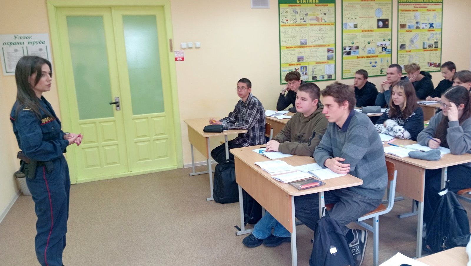Для учащихся 1-го курса была организована встреча с инспектором ДПС МО ГАИ УВД Витебского облисполкома Елгиной Н.А. Учащимся было продемонстрировано документальное видео, а также проведена разъяснительная беседа о том, как вести себя в чрезвычайных ситуациях.