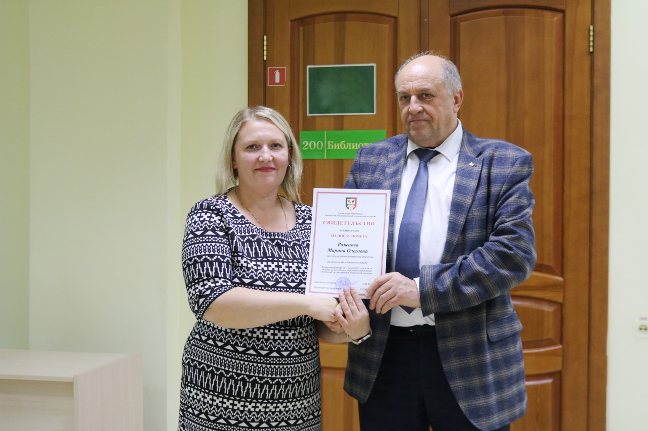 В колледже состоялось торжественное чествование работников, занесенных по итогам работы за 2025 год на доску Почёта колледжа.